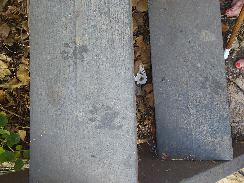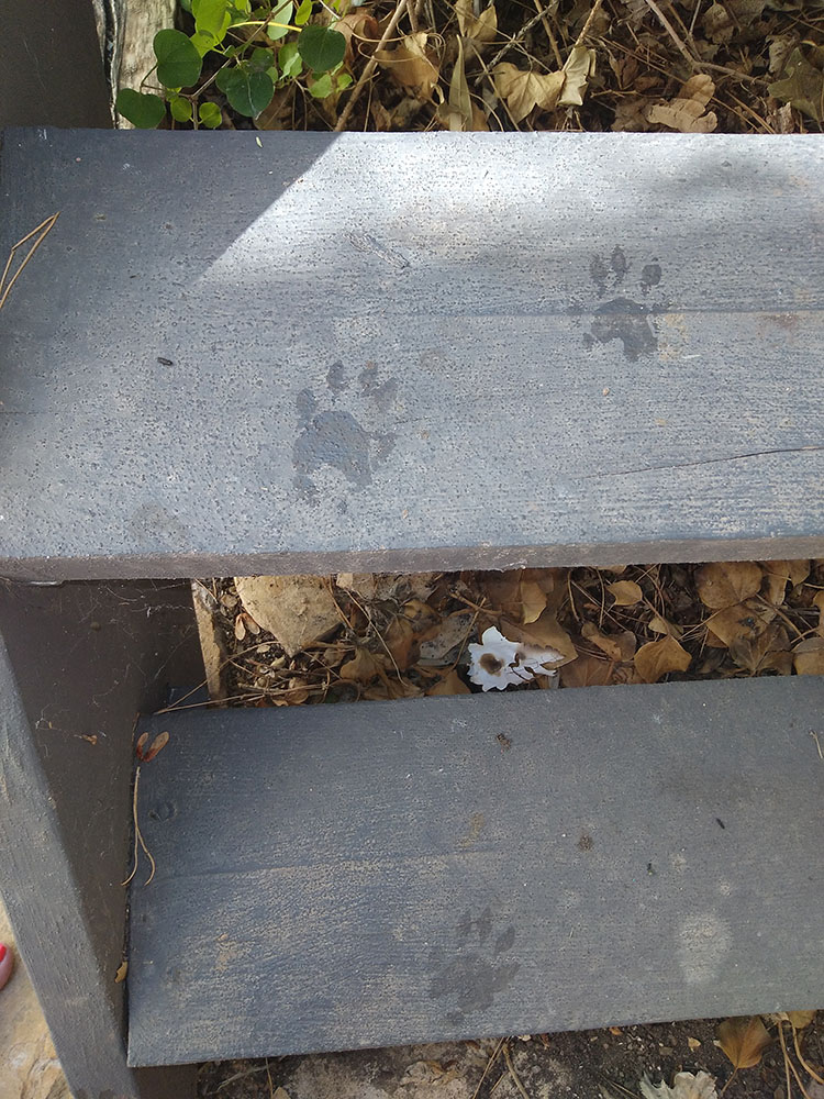 As we near the full moon and the fall equinox, I am thinking that the term ‘lunatic’ is an apt commentary. Our raccoon family of mama and three babies recently found three over-ripe peaches outside the backdoor and tried to sneak away from the scene of the crime undetected. Little did they know they left a tell-tale trail of peach-stickie pawprints all the way up the steps and peach pits and peach parts strewn along the way!