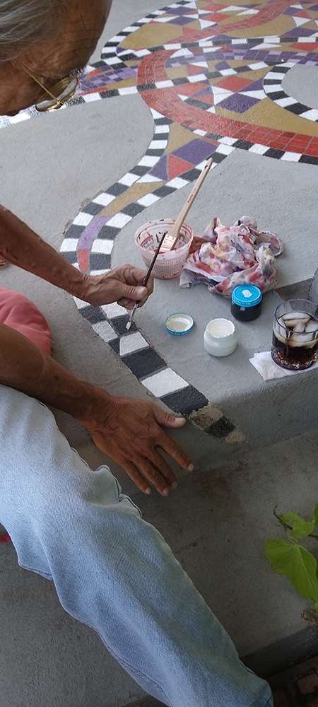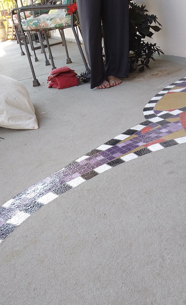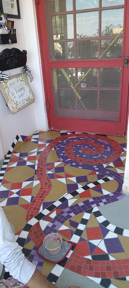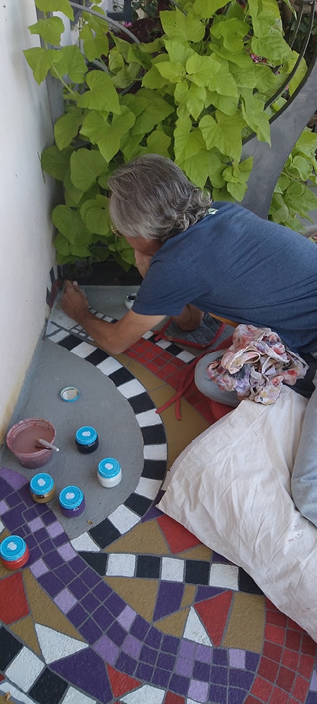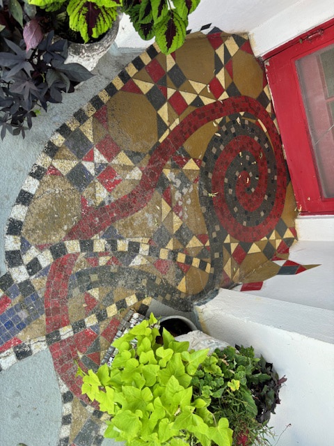 We are literally down to the last several snippets of squares to be completed – 3 that fall over the step under the gate – and the remaining portion of the design nearest to the house which is temporarily currently covered with foliage that would have to be destroyed so we shall await mother nature’s bidding. If it is still warm enough when the potato vine dies back, we will finish that portion in another couple of weeks and if not, we shall wait until the next most perfect moment presents itself weather and plant-wise.