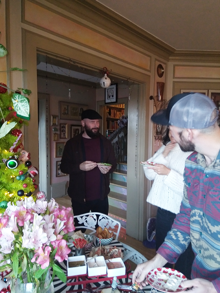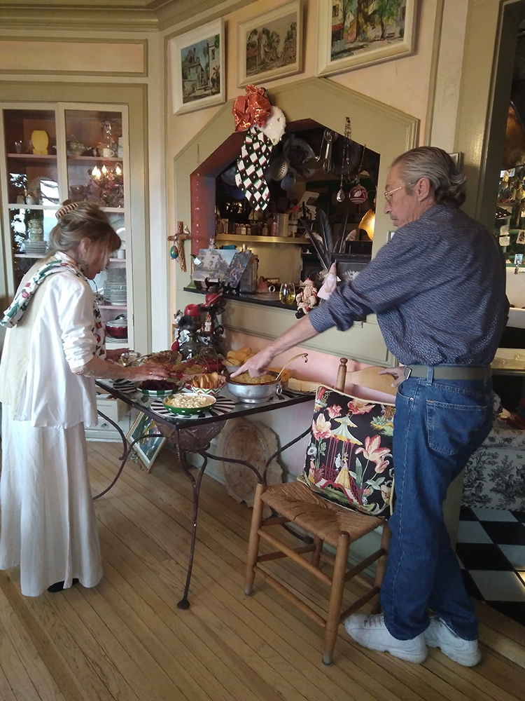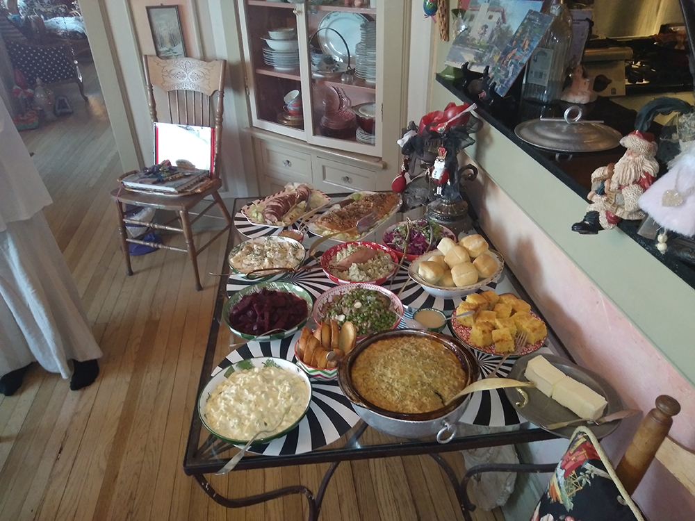 Christmas Eve at The Surgeon’s House found us replete with equal parts fun, silliness, relaxation, magnificent company, and good eats to match! Casual at all levels with a menu mimicking what my family did throughout my childhood on the night of the 24th – steaming crockpots of chowder and chili, cornbread melting butter and topped with honey butter, a handful of tempting side dishes, and ending with cobbler, ice cream, and cake. A hearty and heartfelt thank you to all who joined to make this night of happy anticipation most memorable. Take a look!