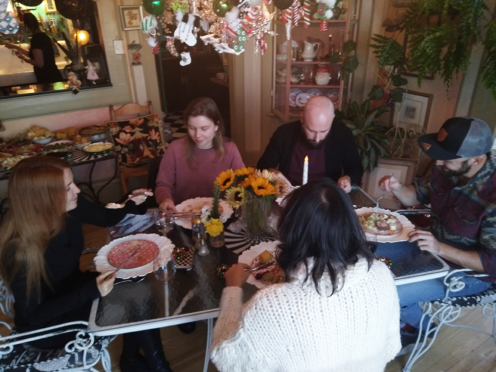 Seasons’ Eatings gatherings typically begin with snackies at 4 pm and dindin closer to 5-5:30 pm. $80 per person (by reservation only and paid for at time of booking.)